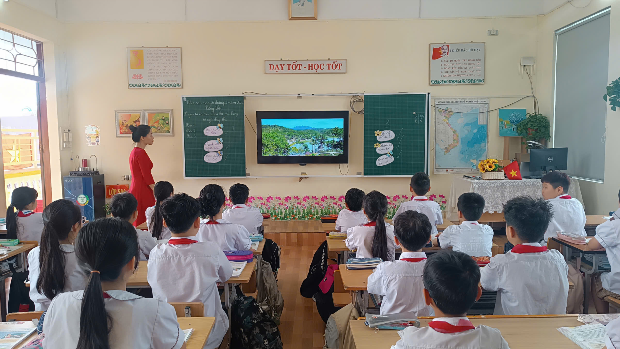 Để phát huy tính tích cực của học sinh thân yêu, cô giáo đã sử dụng linh hoạt các PPDH và HTDH mới nhằm phát triển năng lực tự học, tự tìm tòi cho học sinh. Các em học sinh tự mình khám phá kiến thức trong một cách chủ động, tích cực, chia sẻ tự tin, sôi nổi tham gia trả lời câu hỏi của cô và của bạn mình để khắc sâu kiến thức. Đồng thời trong tiết học, cô giáo đã khai thác tối đa ứng dụng chuyển đổi số và linh hoạt kết nối nội dung của bài học với hoạt động chơi đem lại hiệu quả của giờ dạy.
