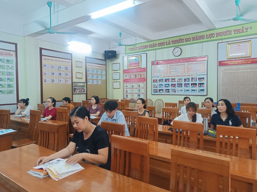 Tham dự tập huấn có các đồng chí trong BGH, các khối trưởng, các đồng chí GV dự kiến phân công dạy lớp 3 năm học 2022-2023 cùng các đồng chí GV các bộ môn Mĩ thuật, Âm nhạc, Ngoại ngữ, Giáo dục thể chất, Tin học.