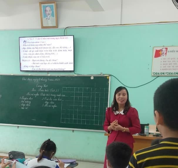 Thể hiện bài "Đọc: Bầu trời" là cô giáo Nguyễn Thị Nhặn và các em học sinh lớp 3A1.