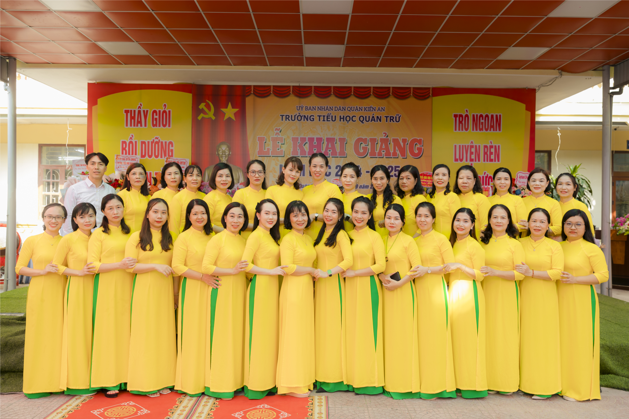 * Cũng trong sáng 5/9, gần 2.000 thầy và trò Trường THPT Kiến Thụy (huyện Kiến Thụy) hòa chung không khí hân hoan đón chào năm học mới.