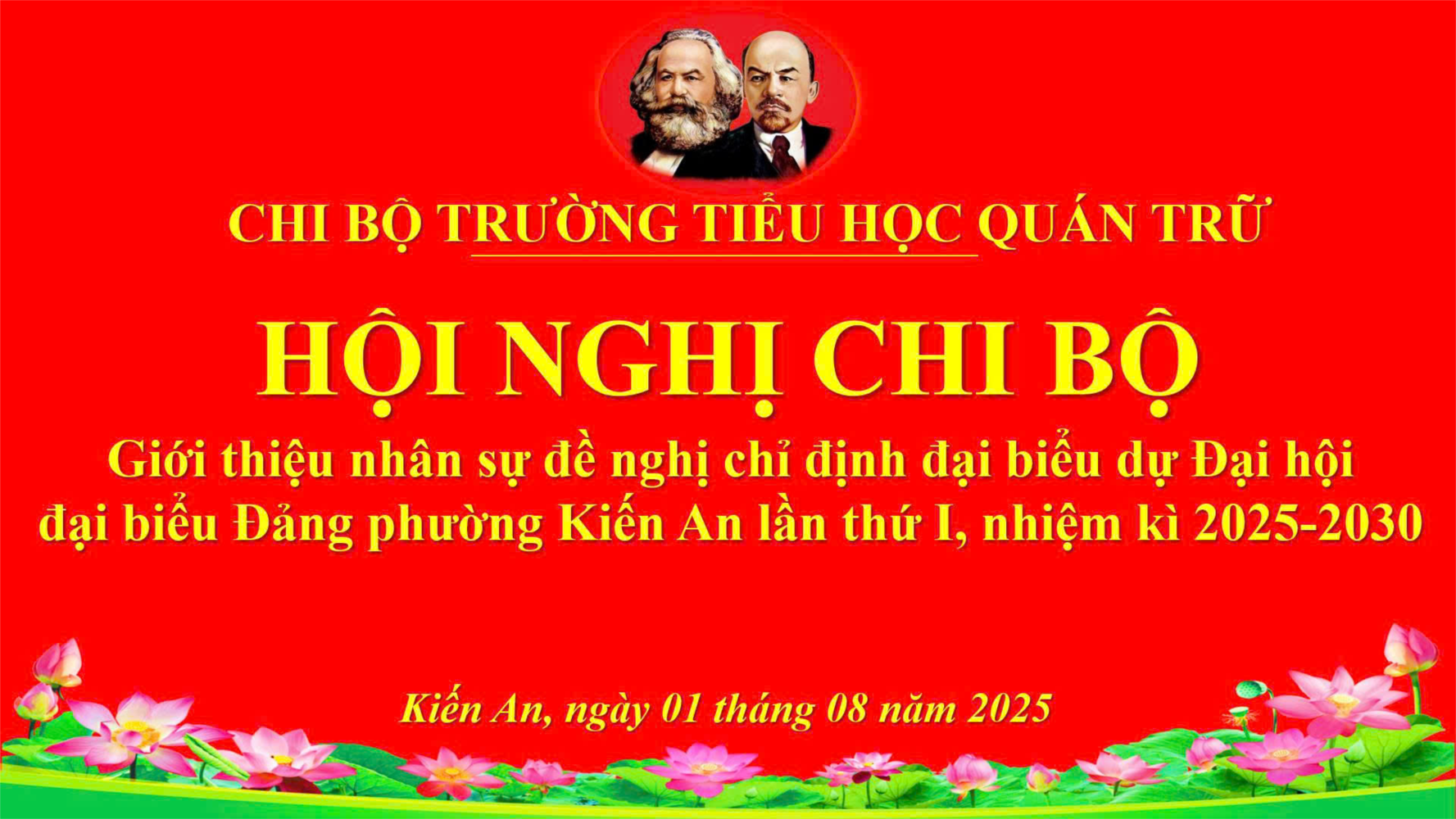 Ngày 01/8/2025, Chi bộ Trường Tiểu học Quán Trữ tổ chức Hội nghị Chi bộ giới thiệu nhân sự tham dự Đại hội đại biểu Đảng bộ phường Kiến An lần thứ I, nhiệm kỳ 2025 - 2030.