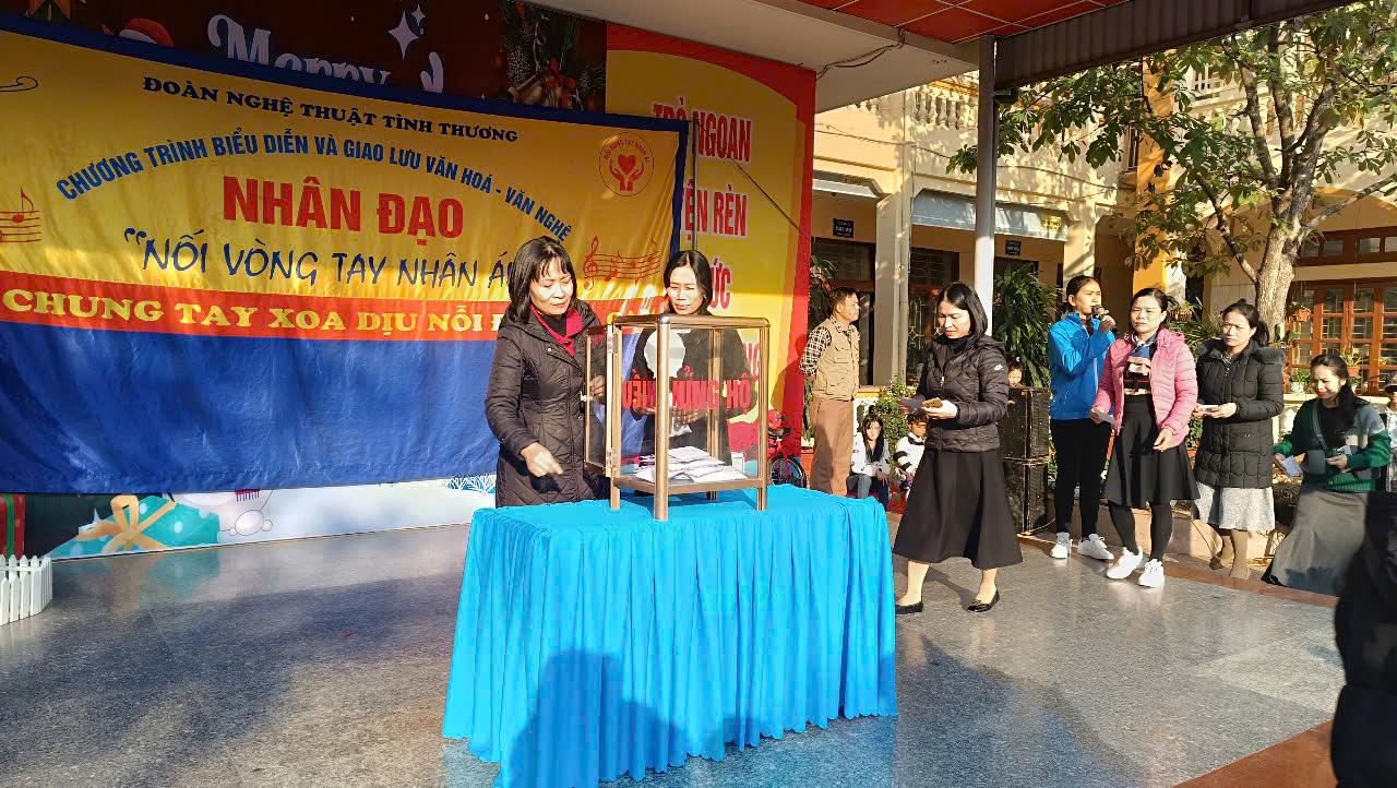 Nhân buổi giao lưu đầy ý nghĩa, các thầy cô giáo, các em học sinh trong nhà trường đã cùng chung tay sẻ chia, ủng hộ đoàn nghệ thuật để động viên, giúp đỡ các anh, chị, em tại Trung tâm giảm bớt gánh nặng trong cuộc sống hàng ngày và giúp những người trẻ tại Trung tâm có thêm nghị lực, niềm tin vào cuộc sống.