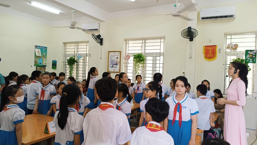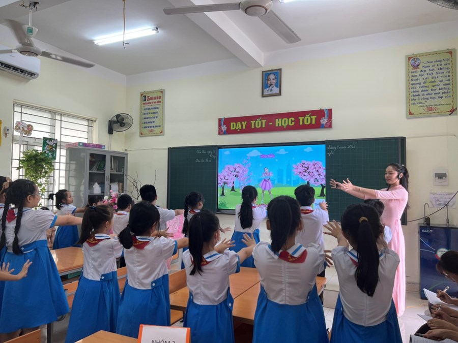 Thể hiện tiết dạy là cô giáo Trần Thị Phương Thảo và các em học sinh lớp 4A4