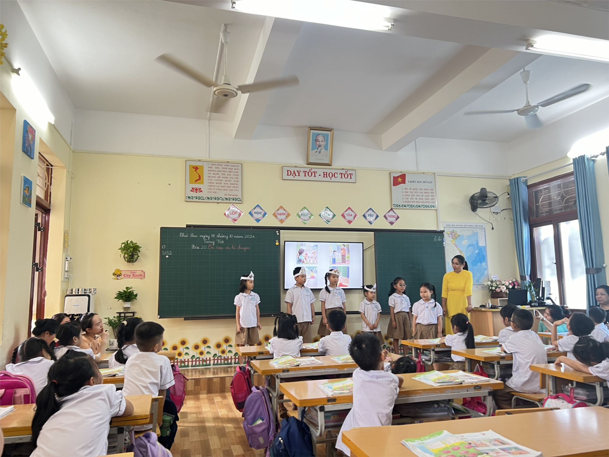 Thể hiện bài: Bài 20: Ôn tập và kể chuyện: “Cô chủ không biết quý tình bạn” là cô giáo Vũ Thị Thúy Hà và các em học sinh lớp 1A1.