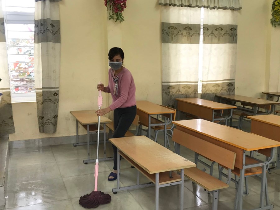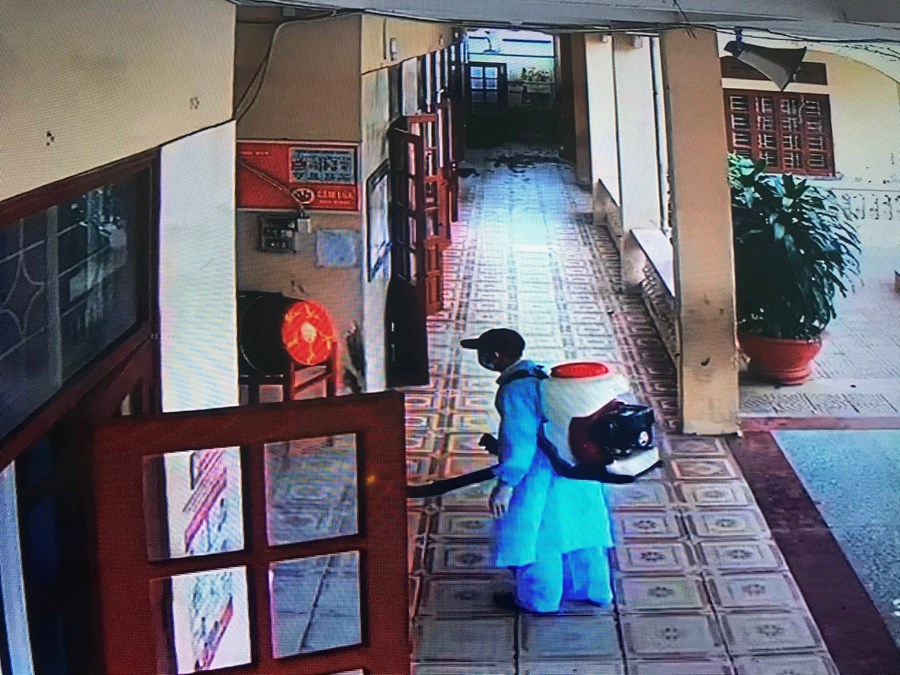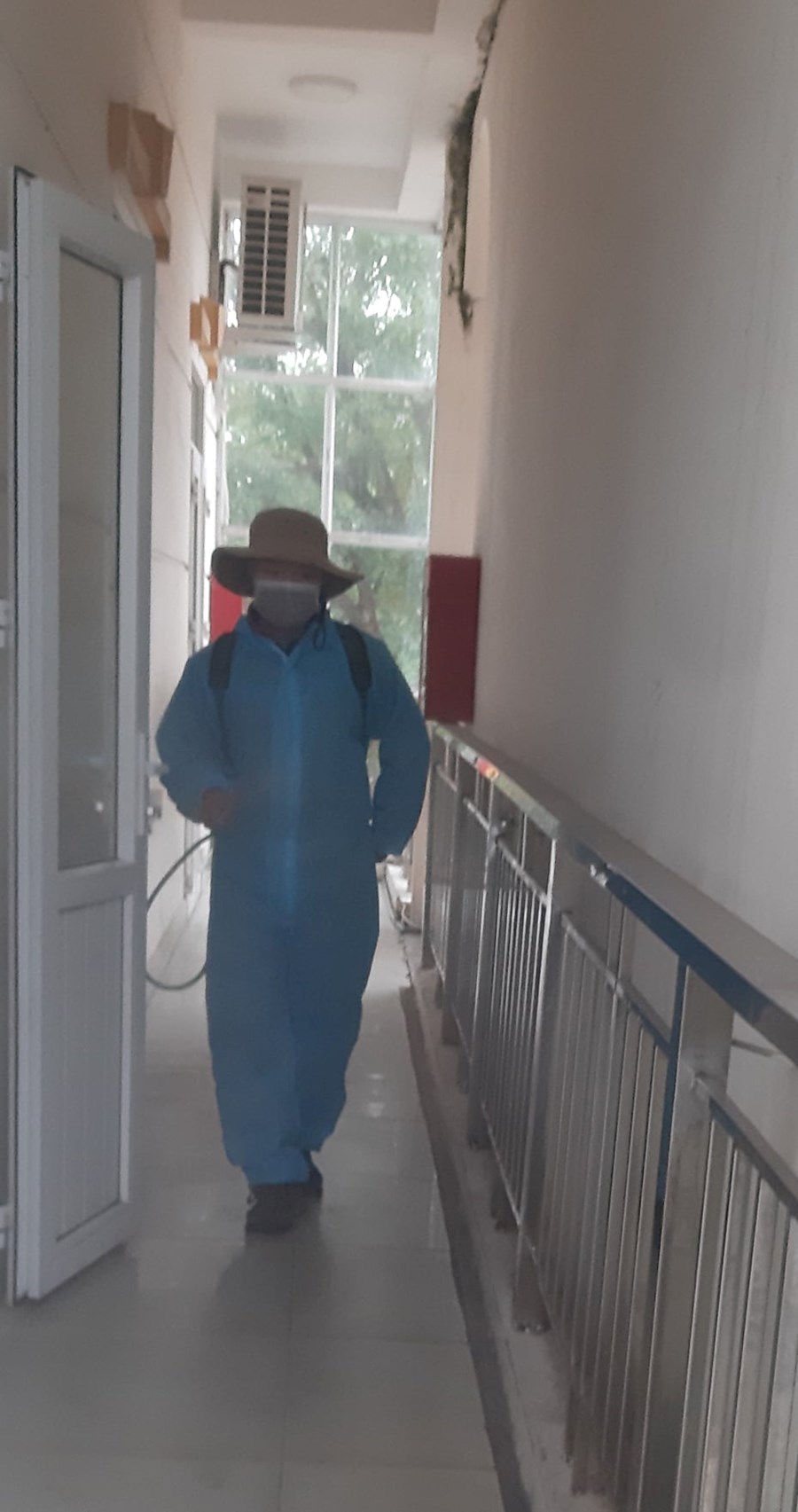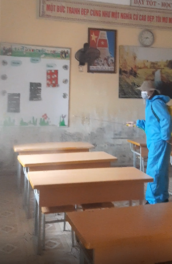 Tiến hành phun khử khuẩn toàn bộ trường học. Tổ chức cho GV, CNV dọn vệ sinh, khử khuẩn trong các lớp học, trang thiết bị và đồ dùng học tập, các khu vực chung như hành lang, nhà vệ sinh, cầu thang,...