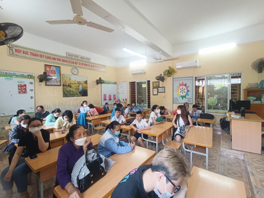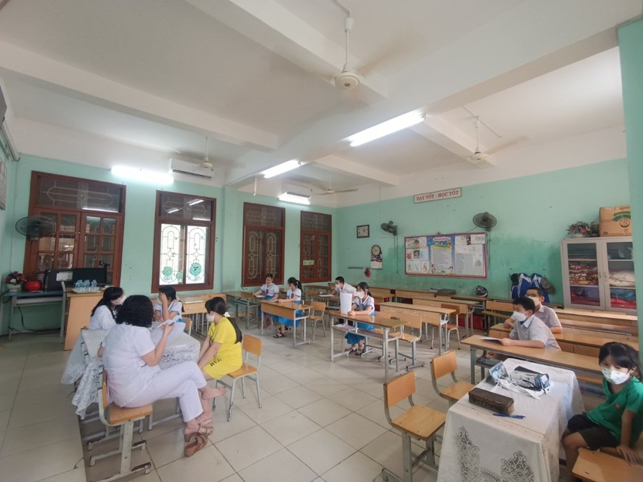 Để chuẩn bị cho công tác tiêm chủng, nhà trường đã chuẩn bị đầy đủ cơ sở vật chất, từ khu khám sàng lọc, phòng tiêm, phòng chờ cũng như khu vực cho phụ huynh ngồi chờ. Đồng thời, nhà trường đã chia các khung thời gian khác nhau để cho học sinh sẽ lần lượt vào tiêm theo đúng kế hoạch.