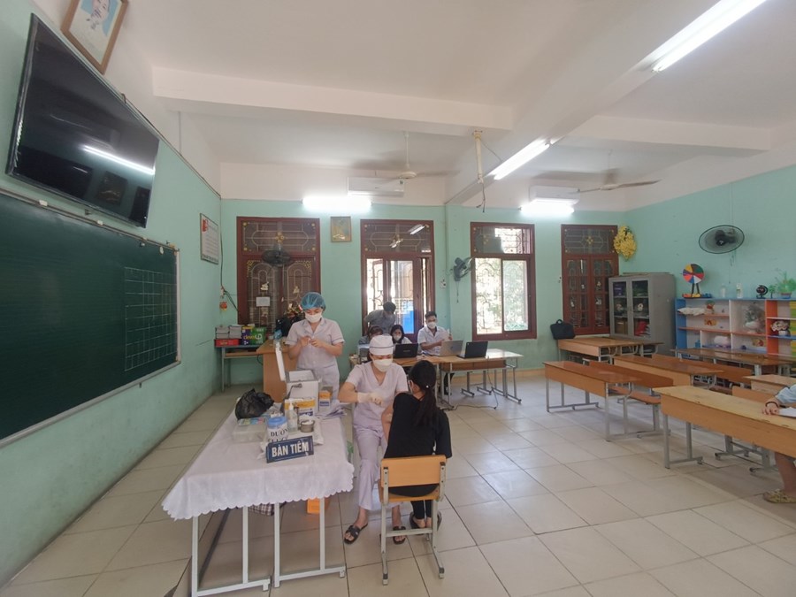 Nhờ sự chuẩn bị cẩn thận, tỉ mỉ từ phía nhà trường, sự hỗ trợ của Trạm y tế phường, các phụ huynh, công tác tiêm chủng diễn ra an toàn và đạt hiệu quả.
