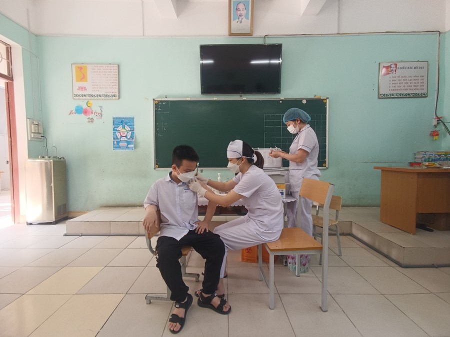 Sáng ngày 18/5/2022 Trường Tiểu học Quán Trữ phối hợp với Trạm Y tế phường Quán Trữ tổ chức tiêm vắc xin phòng, chống dịch bệnh Covid-19 mũi 1 cho HS từ lớp 1 đến lớp 5 tại trường.
