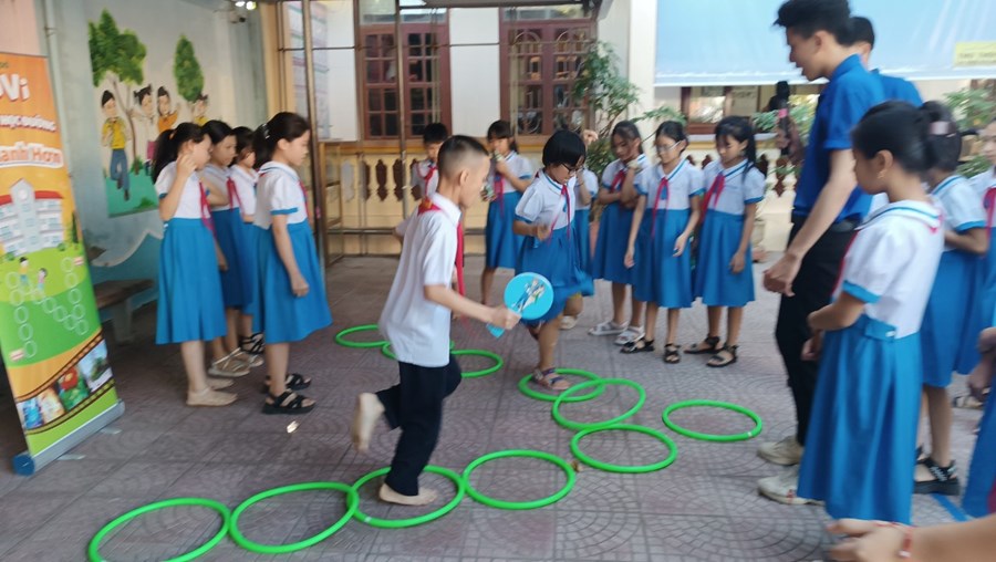 Bên cạnh đó, năm học 2023 - 2024, nhà trường cũng đã trang trí thêm khá nhiều sân chơi dân gian dành cho các em, để giờ ra chơi luôn mang đến những điều thú vị.