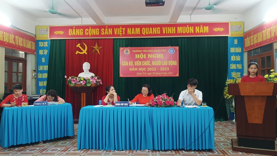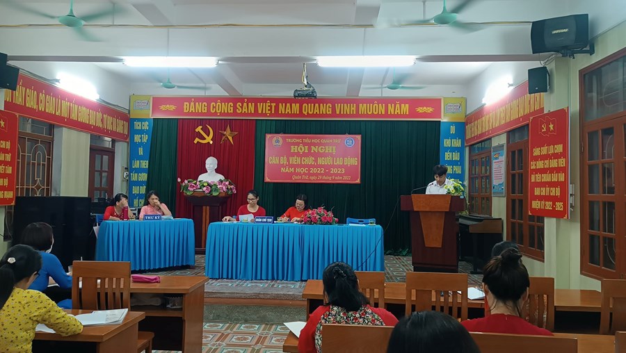 Chiều ngày 29/9/2022, Chi bộ trường Tiểu học Quán Trữ long trọng tổ chức Hội nghị Cán bộ, viên chức, người lao động năm học 2022 - 2023