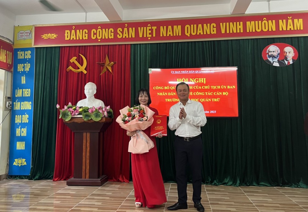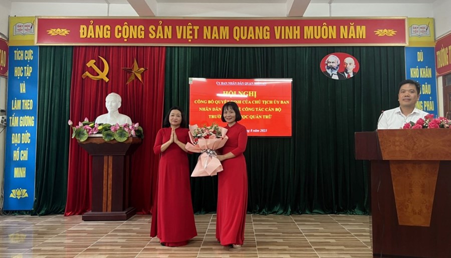 Chiều ngày 8 tháng 8 năm 2023, thực hiện công tác luân chuyển cán bộ, lãnh đạo UBND Quận Kiến An, lãnh đạo Phòng Giáo dục và Đào tạo, lãnh đạo phường Quán Trữ đã dự và trao các quyết định về công tác cán bộ luân chuyển và điều động với 2 nhà giáo: cô Vũ Thị Minh và cô Trần Thị Minh Nghĩa.