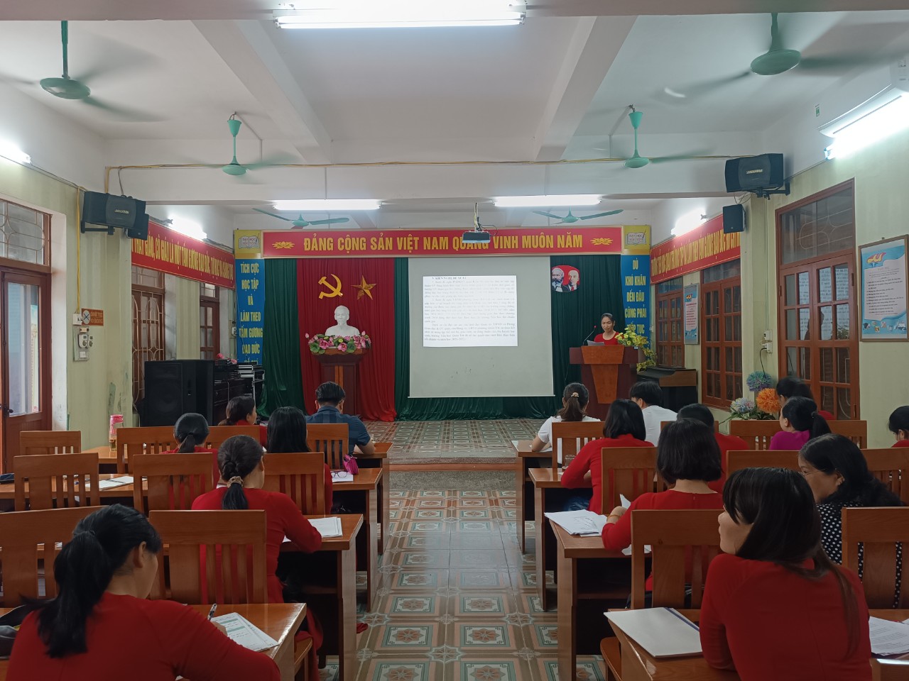 Hội nghị đã được nghe báo cáo tổng kết năm học 2021 - 2022 và phương hướng nhiệm vụ năm học 2022 - 2023 do đồng chí Vũ Thị Minh - Bí thư Chi bộ, Hiệu trưởng nhà trường trình bày. Đồng thời nhà trường đã biểu dương, khen thưởng những cá nhân và tập thể có thành tích tốt trong năm học.
