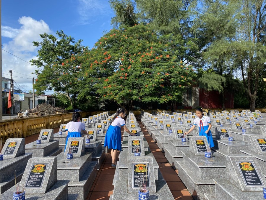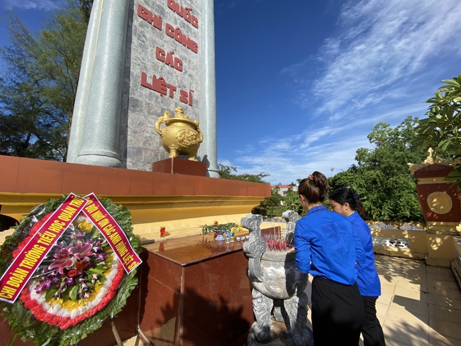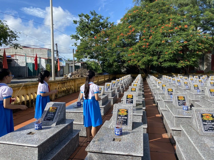 Nhân dịp kỉ niệm 75 năm Ngày Thương binh - Liệt sĩ (27/7/1947 – 27/7/2022), sáng ngày 22/7/2022, Chi đoàn giáo viên và các em học sinh trường Tiểu học Quán Trữ đã đến dâng hương tại Nghĩa trang liệt sỹ Đồng Hòa - Quán Trữ.