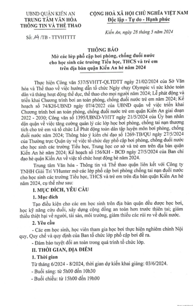Thời gian: Từ 01/6/2024 đến tháng 8/2024
