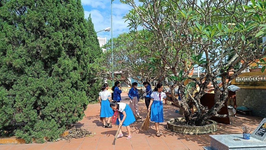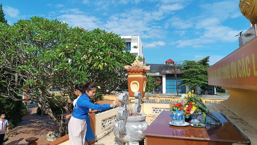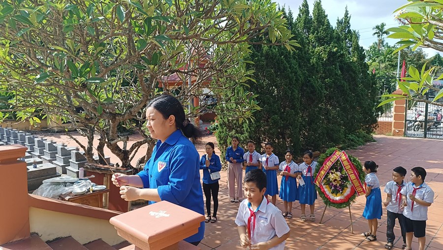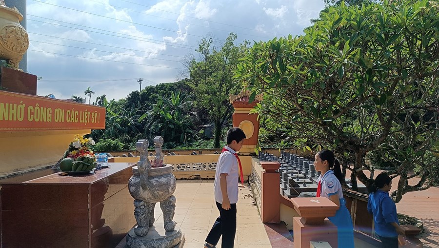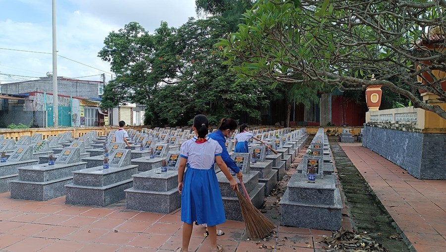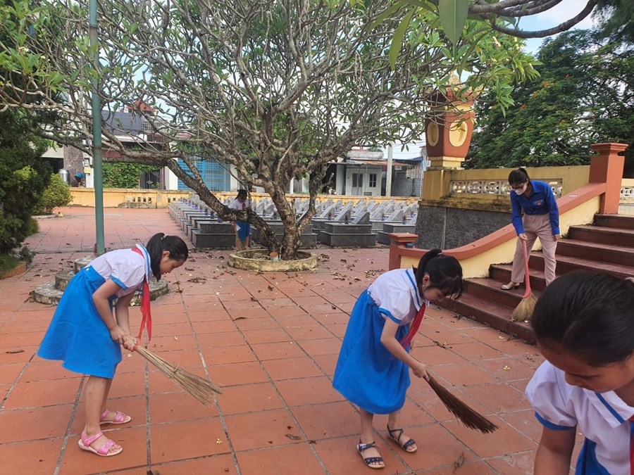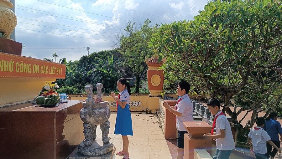 công dân Việt Nam, với niềm tự hào, lòng thành kính và lòng biết ơn sâu sắc, ngày 21/7/2023 Chi đoàn giáo viên và các em học sinh trường Tiểu học Quán Trữ đã đến dâng hương tại Nghĩa trang liệt sĩ Đồng Hòa - Quán Trữ.