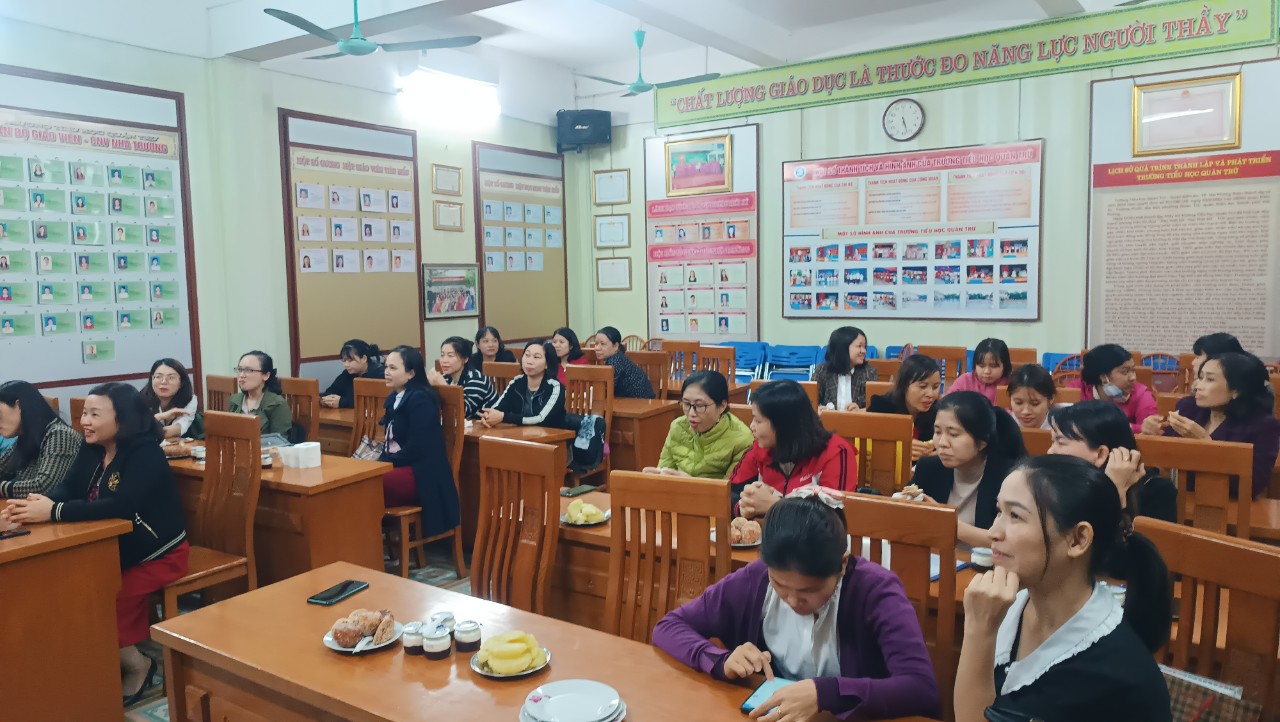 Hoà chung không khí phấn khởi và tự hào của phụ nữ cả nước kỷ niệm 92 năm ngày thành lập Hội LHPN Việt Nam (20/10/1930 – 20/10/2022). Chiều ngày 20/10/2022, Công đoàn trường Tiểu học Quán Trữ hân hoan tổ chức Mít tinh Kỉ niệm ngày Phụ nữ Việt Nam 20/10. Tại buổi lẽ chị em được cùng nhau ôn lại những truyền thống tốt đẹp của người Phụ nữ Việt Nam. Trong những năm qua, chị em phụ nữ trường Tiểu học Quán Trữ đã luôn khẳng định được vai trò quan trọng và có những đóng góp hết sức to lớn cho sự phát triển vững mạnh, toàn diện của nhà trường. Các đồng chí luôn giữ gìn, phát huy phẩm chất đạo đức trong sáng của nữ cán bộ giáo viên trong ngành giáo dục. Nhiều chị em đã đạt danh hiệu:“Giỏi việc trường, đảm việc nhà”.