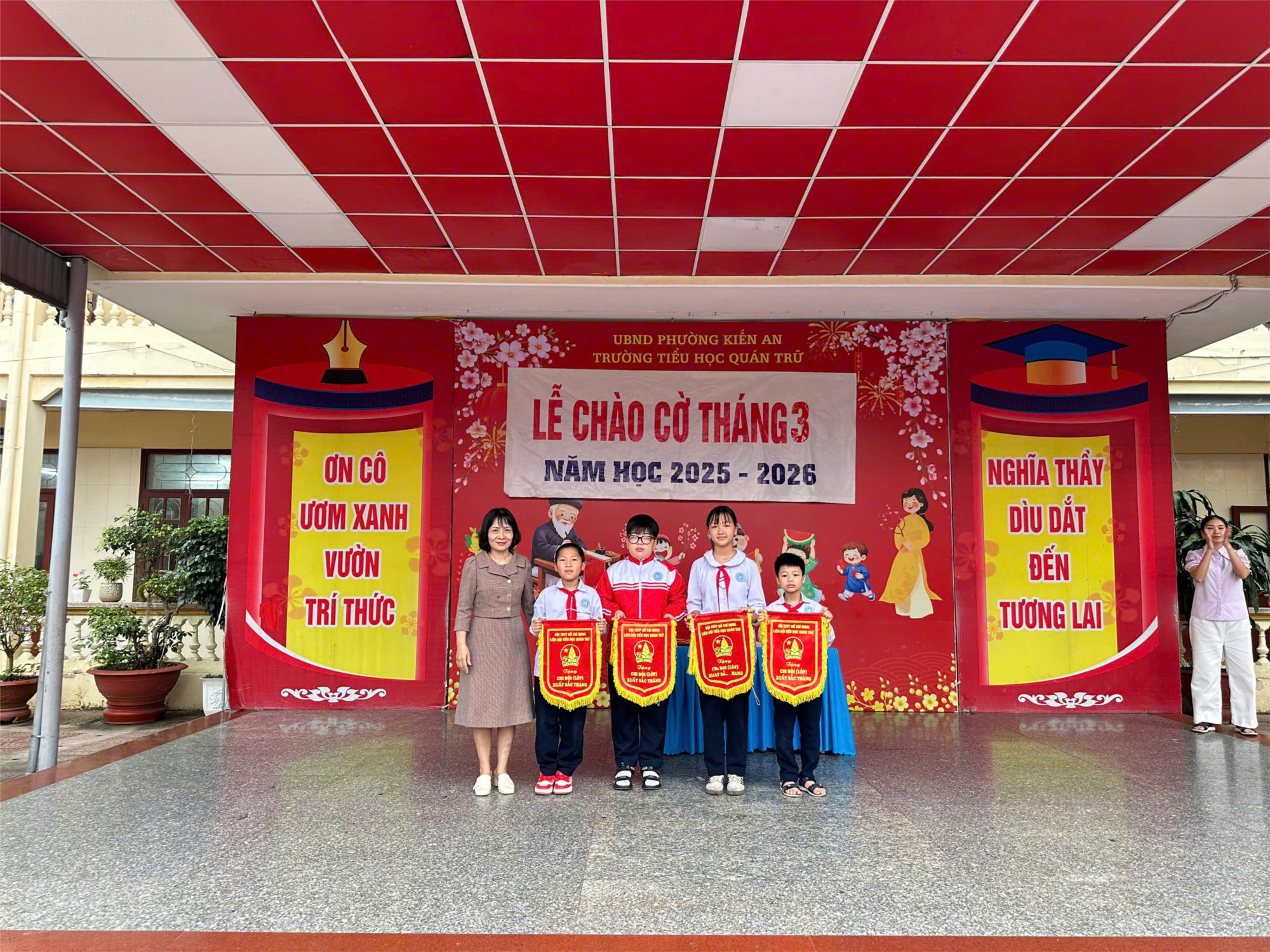 Sáng thứ Hai, ngày 02/03/2026, Liên đội trường TH Quán Trữ đã long trọng tổ chức Lễ chào cờ tháng 3 trong không khí trang nghiêm và đầy hứng khởi, với sự tham dự của Ban Giám hiệu, các thầy cô giáo cùng toàn thể các em học sinh.