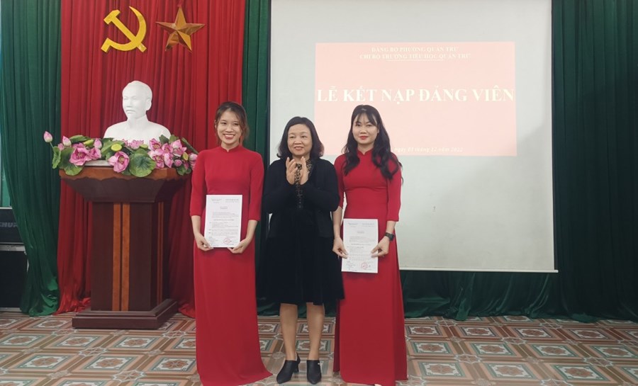 Chiều ngày 01/12/2022, Chi bộ Trường Tiểu học Quán Trữ long trọng tổ chức lễ kết nạp Đảng viên mới cho 2 quần chúng ưu tú là đồng chí Nguyễn Thị Lan Hương và Nguyễn Thị Quỳnh.