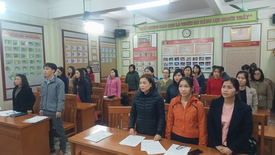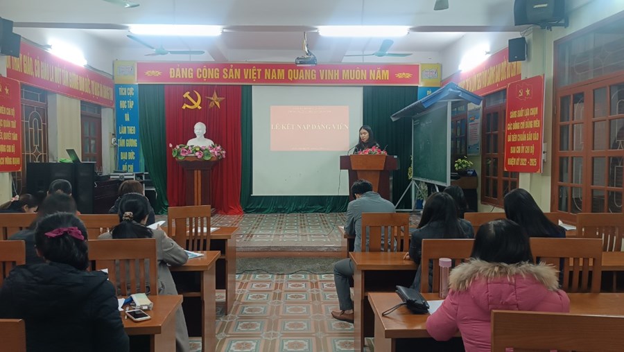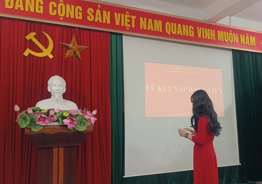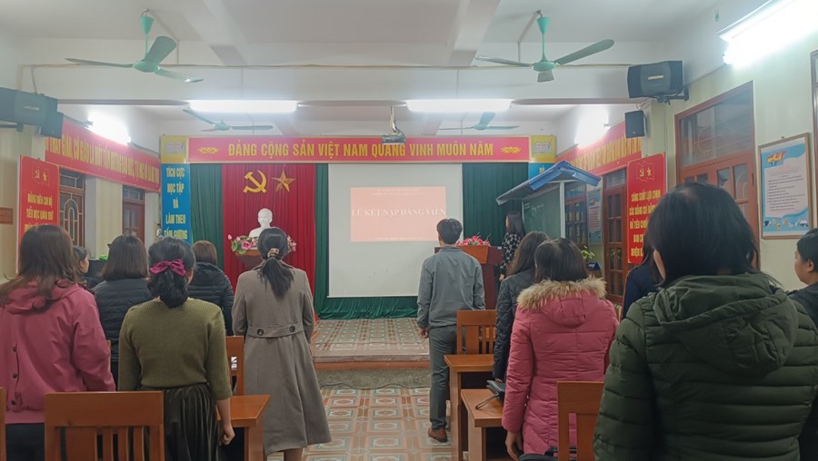 Đảng. Tại buổi lễ, đồng chí Vũ Thị Minh - Bí thư chi bộ - Hiệu trưởng nhà trường đã trao quyết định kết nạp Đảng, căn dặn 2 đồng chí phải tích cực rèn luyện, nâng cao trình độ, năng lực chuyên môn, phẩm chất chính trị, đạo đức cách mạng, thực hiện đúng trách nhiệm và nghĩa vụ của người đảng viên Đảng Cộng sản Việt Nam.