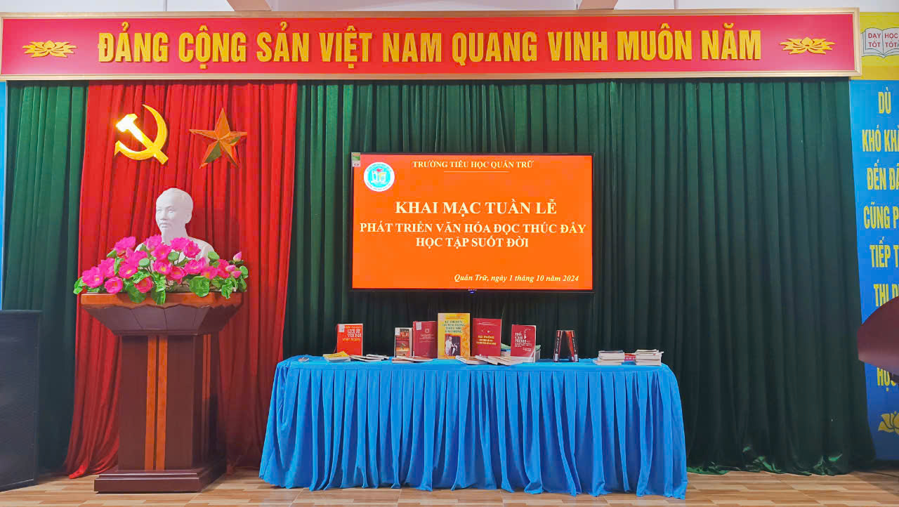Trong không khí tưng bừng của cả nước hưởng ứng Tuần lễ Học tập suốt đời, Liên đội trường TH Quán Trữ đã tổ chức Phát động: TUẦN LỄ HƯỞNG ỨNG HỌC TẬP SUỐT ĐỜI NĂM 2024. Cùng nhau hướng về một chủ đề vô cùng ý nghĩa: Phát triển văn hóa đọc thúc đẩy học tập suốt đời.