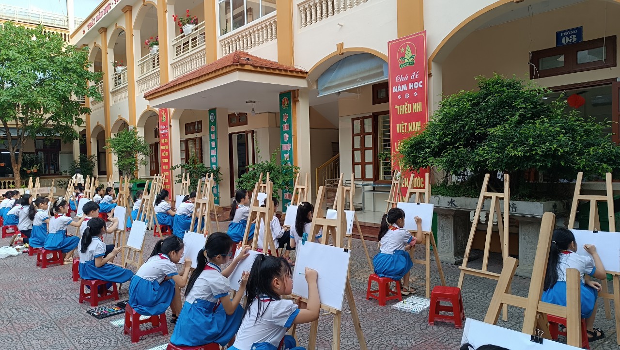 Nhà trường đã tổ chức chấm tranh và đã lựa chọn ra 2 em học sinh đại diện cho học sinh nhà trường tham gia cuộc thi cấp Quận: