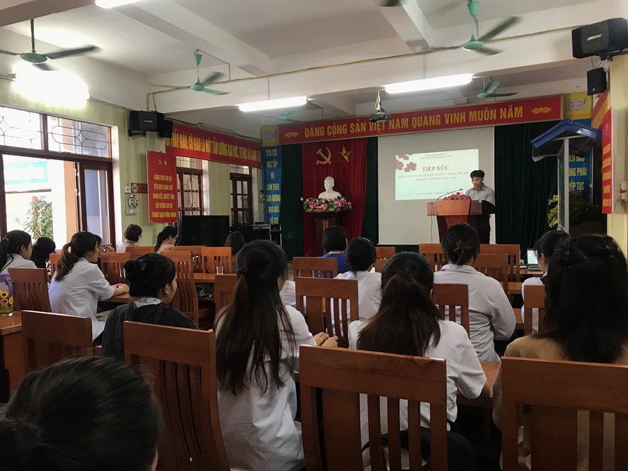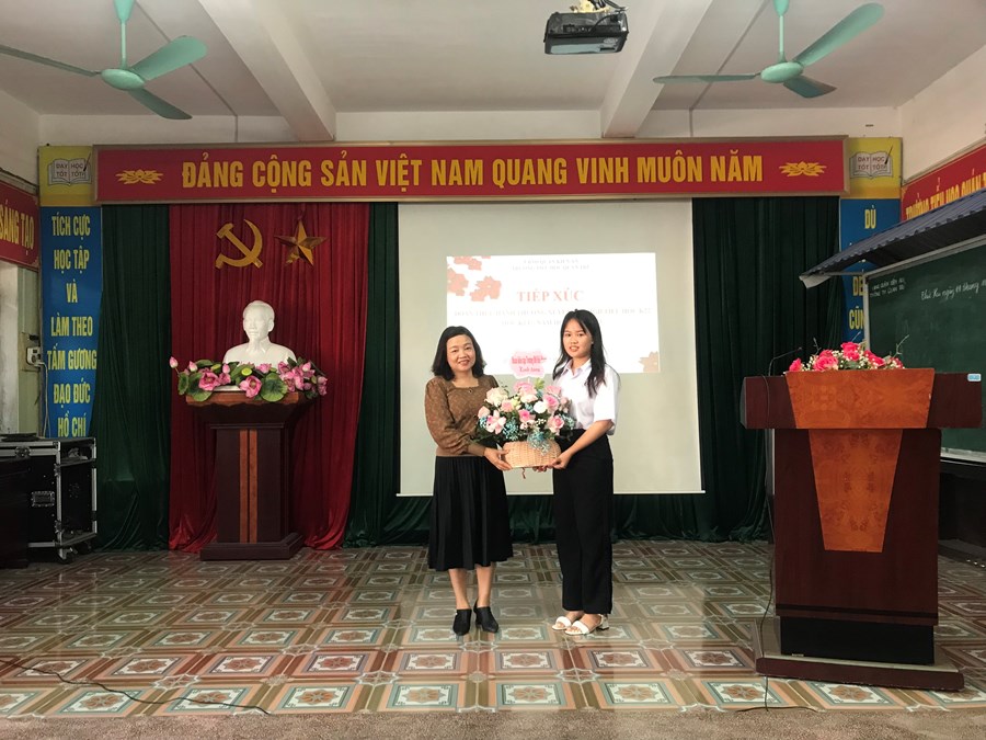 Trong buổi tiếp xúc, đồng chí Vũ Thị Minh - Bí thư chi bộ, Hiệu trưởng nhà trường đã có những chia sẻ về tình hình thực tế địa phương, nhà trường để giúp sinh viên trong Đoàn thực tập nắm vững thông tin ban đầu về nhà trường.