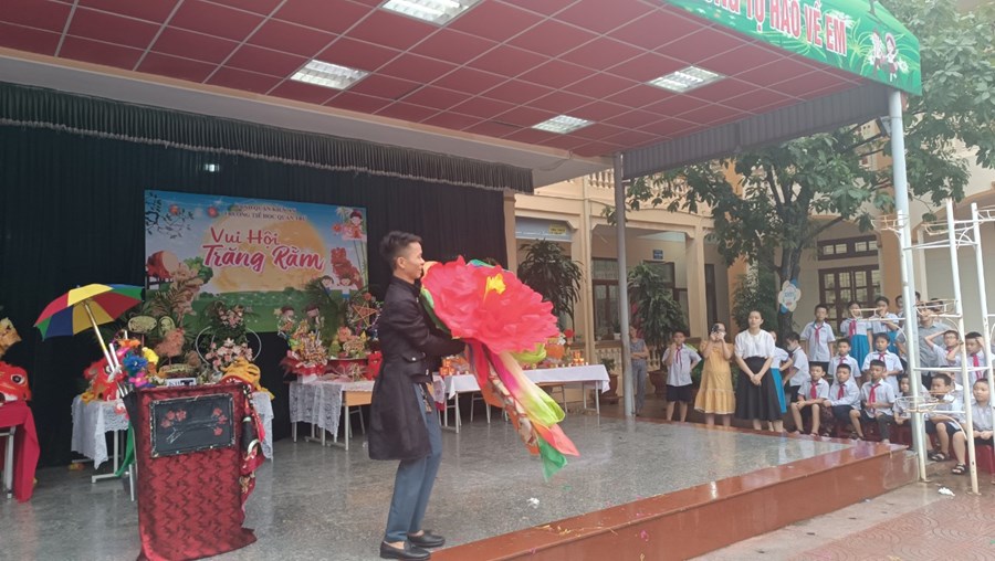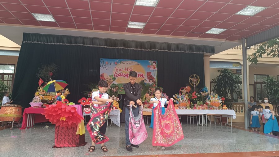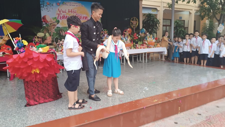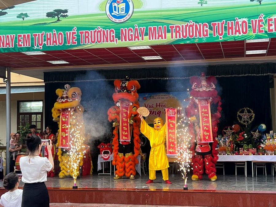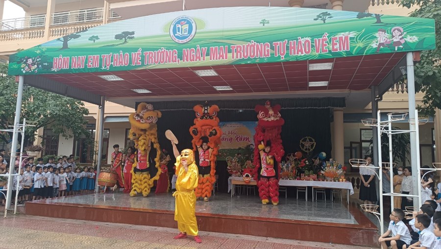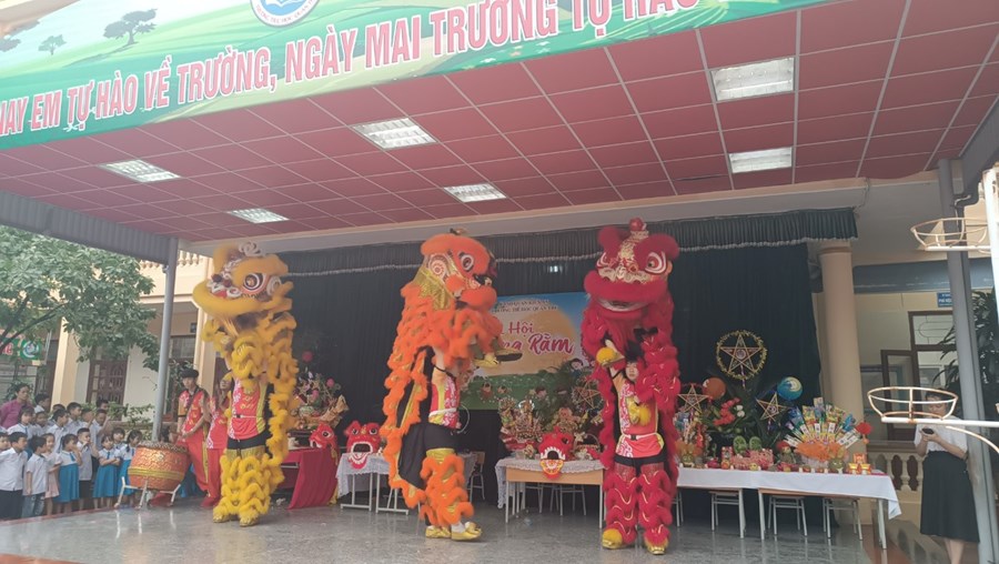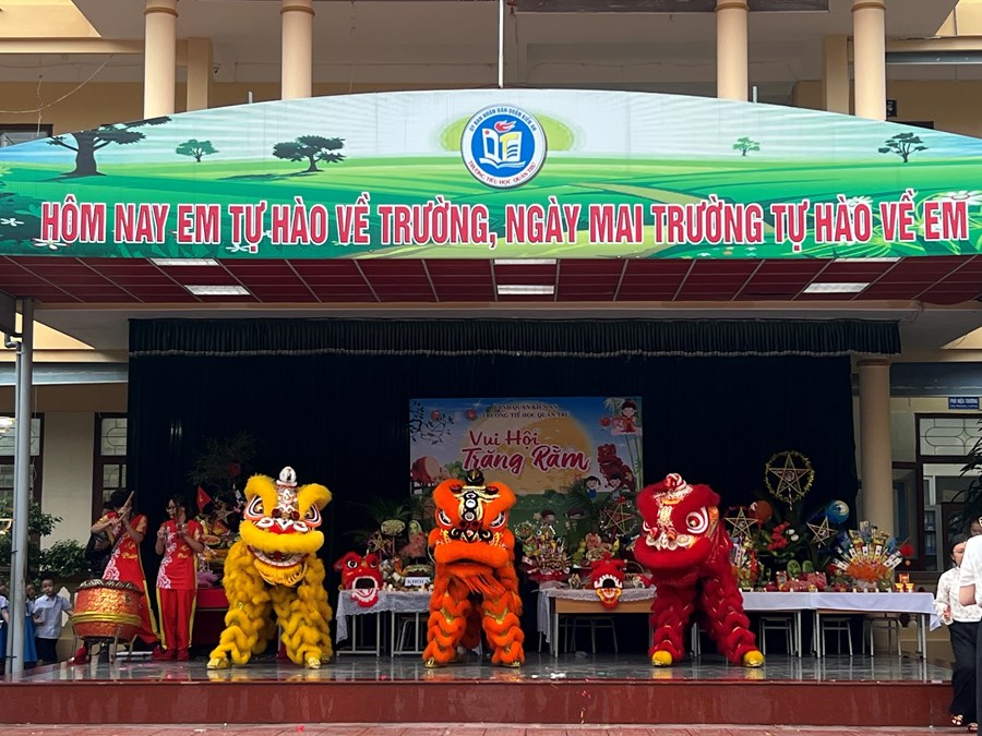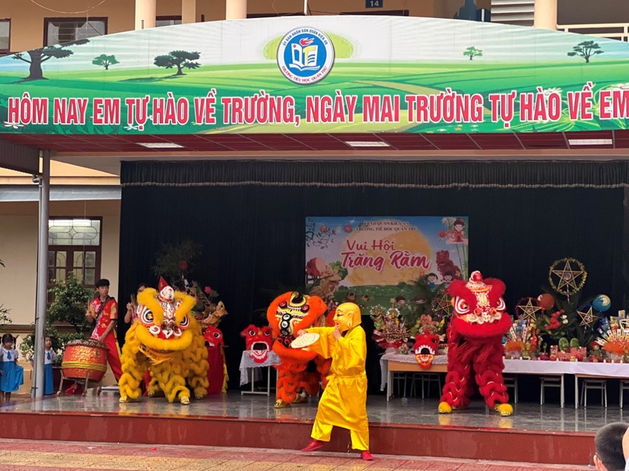 Tiếng trống lân đã vang lên rộn ràng, sắc đỏ đã bao trùm rực rỡ tại trường Tiểu học Quán Trữ.