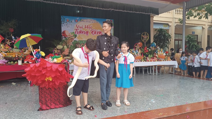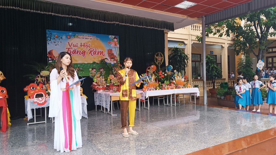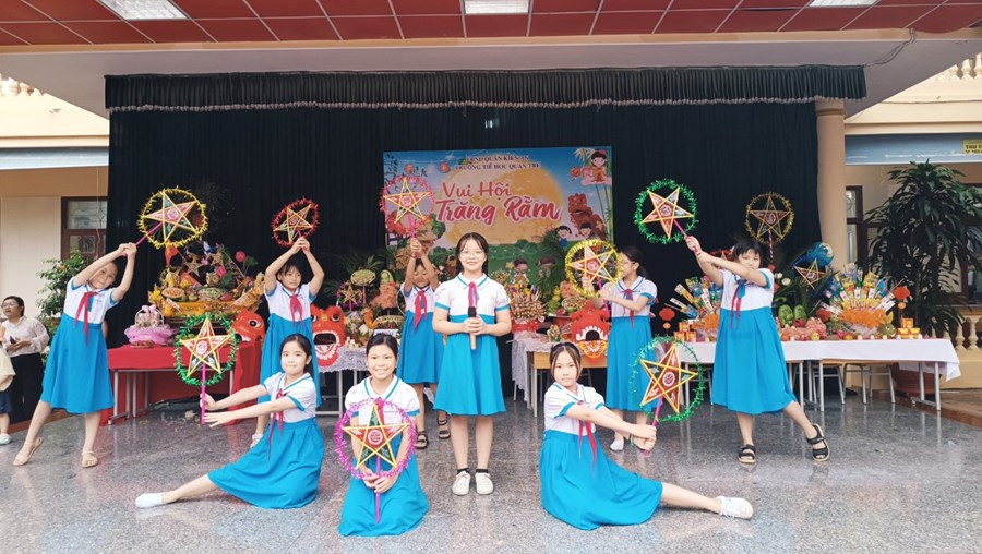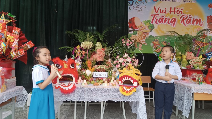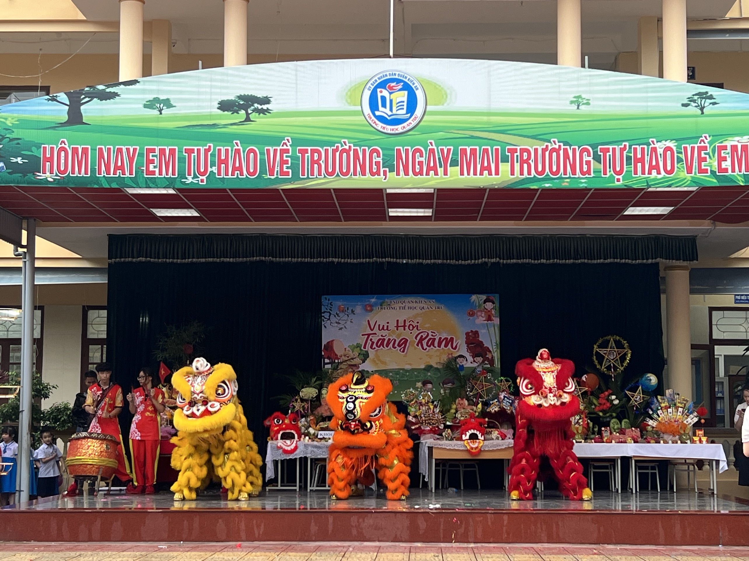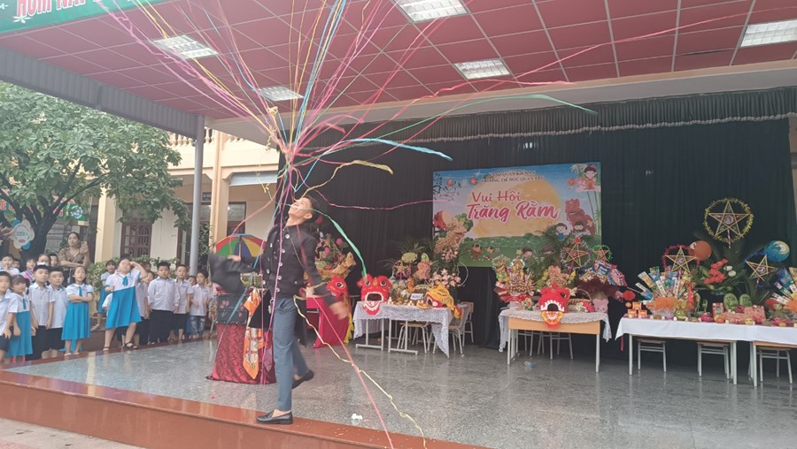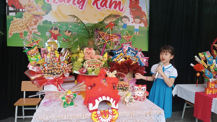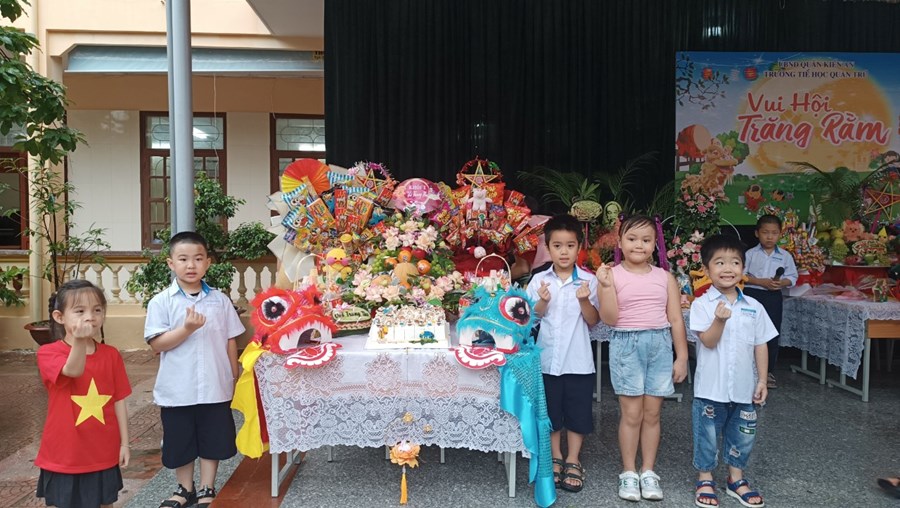 Tiếng trống lân đã vang lên rộn ràng, sắc đỏ đã bao trùm rực rỡ tại trường Tiểu học Quán Trữ.
