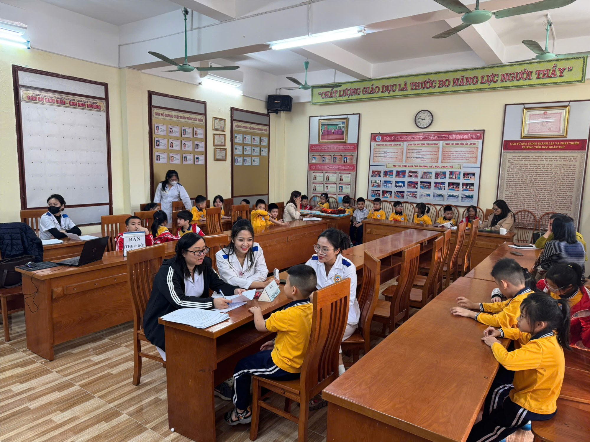 Thực hiện kế hoạch chăm sóc sức khỏe học đường năm học 2025–2026, sáng ngày 27/11/2025, Trường Tiểu học Quán Trữ phối hợp với Trạm Y tế phường Kiến An tổ chức tiêm phòng bạch hầu – uốn ván cho học sinh lớp 2. Đây là hoạt động nhằm tăng cường miễn dịch, giúp học sinh phòng tránh các bệnh truyền nhiễm nguy hiểm và xây dựng môi trường học tập an toàn, khỏe mạnh.