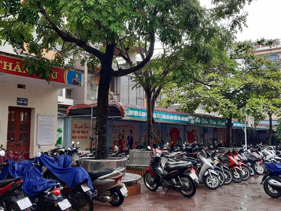 Đặc biệt các bậc phụ huynh học sinh đã hợp tác với nhà trường để giảm thiểu tình trạng ùn tắc giao thông trong sân trường. Từng hàng xe được xếp ngay hàng thẳng lối.
