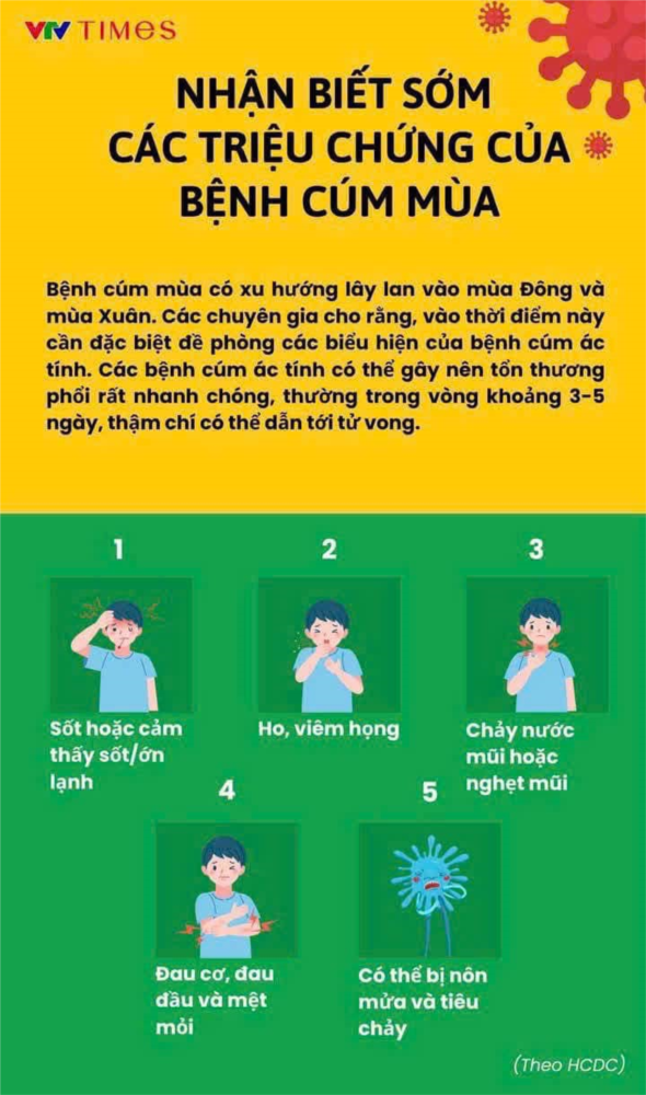 Bệnh cúm mùa là bệnh truyền nhiễm cấp tính với biểu hiện sốt, đau đầu, đau cơ, mệt mỏi, sổ mũi, đau họng và ho.