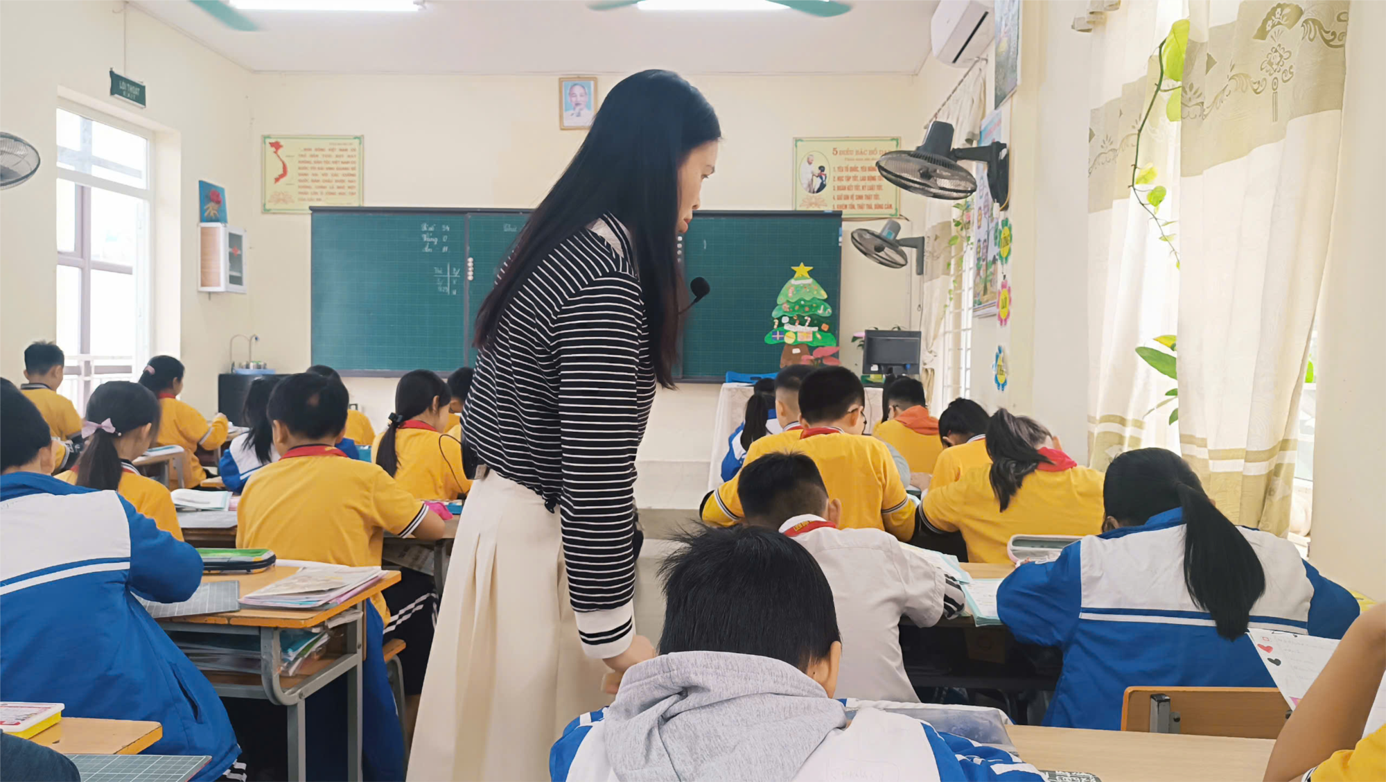 Trong tiết dạy, GV đã tích cực ứng dụng công nghệ thông tin, đặc biệt là phần mềm Plicker, ứng dụng công nghệ AI vào các video hoạt hình tình huống. Qua đó tạo hứng thú cho HS học tập. Học sinh lớp 5A2 đã chủ động, phát huy được năng lực tự học, năng lực tự chủ, hợp tác để ôn tập kiến thức và vận dụng vào làm bài tập.